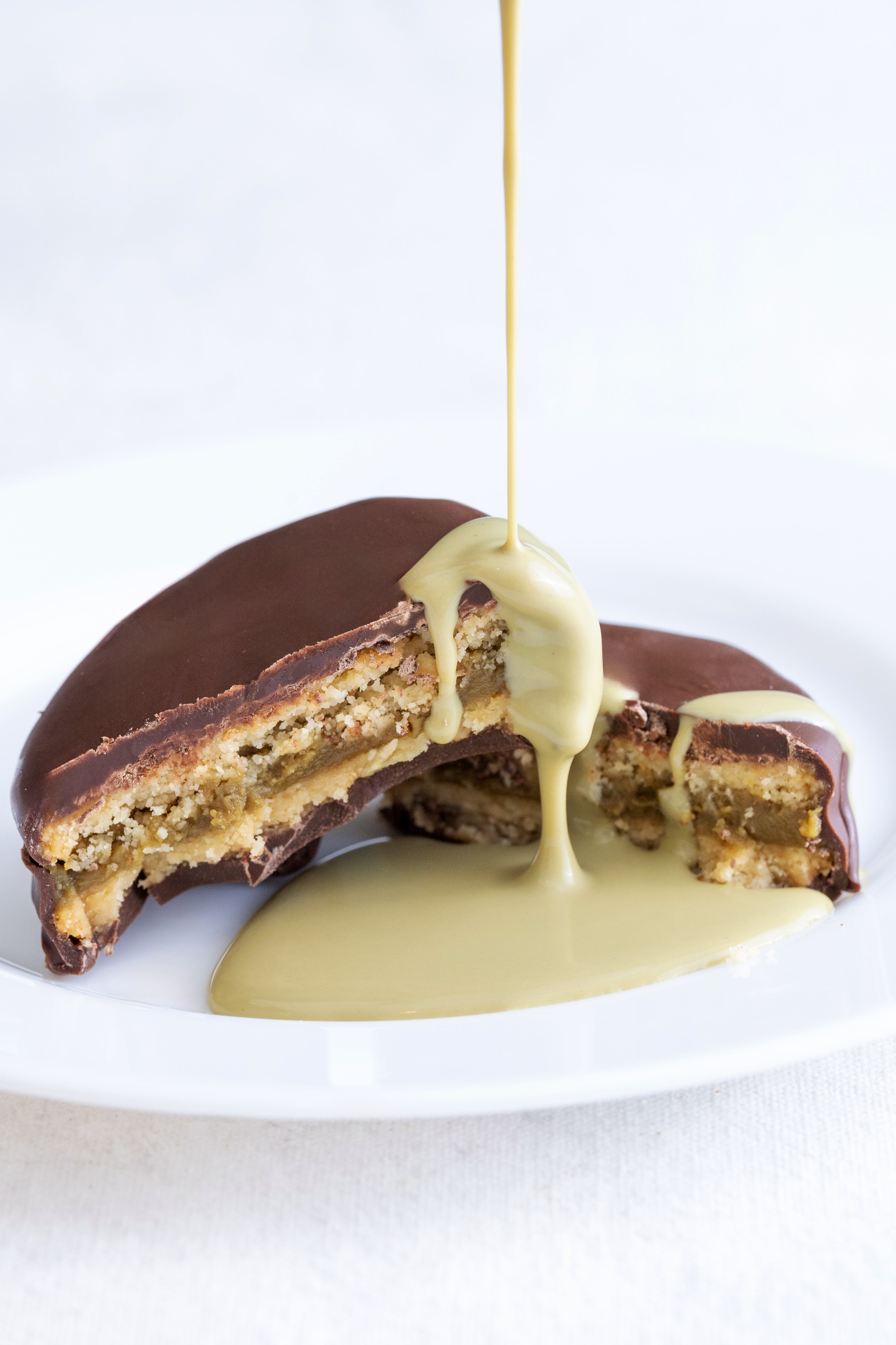 Alfajores rellenos de manjar de pistacho con galleta de harina de almendras vienen 6 unidades sin azúcar, harina, keto y sin gluten.